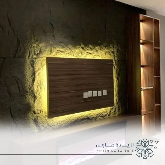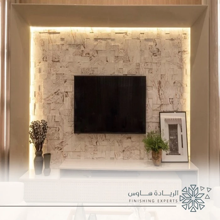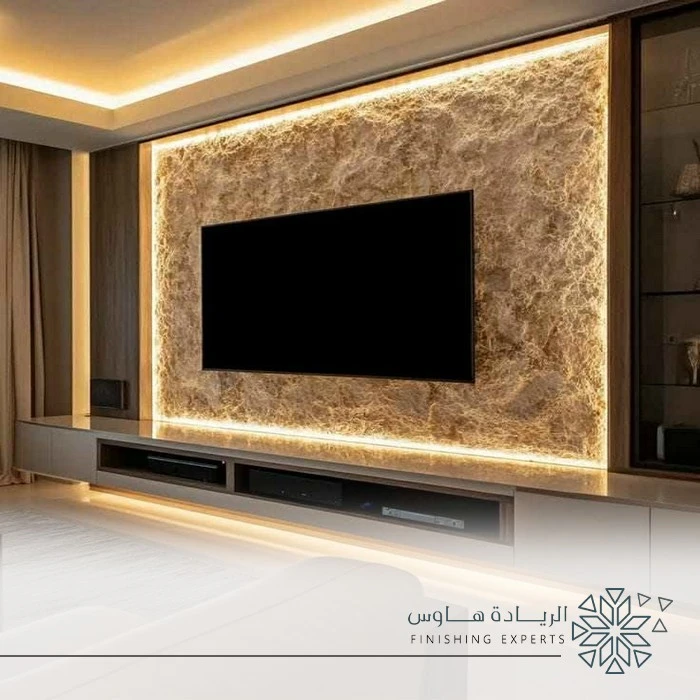 - خلفيات التلفزيون: يعطي عمق رهيب لمجلسك، خصوصاً مع إضاءة خافته تبرز تفاصيل الحجر.